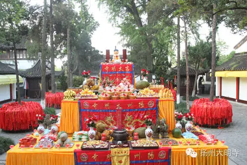 扬州大明寺于农历二零一五年四月初一至四月初七,阳历5月18日至5月24日(2015年5月17日下午洒净)启建 法界圣凡水陆普度大斋胜会,又名水陆法会,是汉传佛教最重要的大型法事活动。