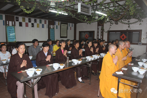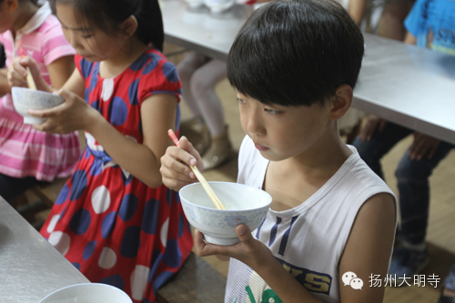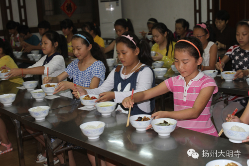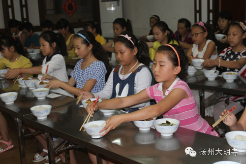 2014年8月22日,扬州大明寺首届青少年”慈悲,报恩夏令营迎来了28位学员,在经过上午一段时间的悉心教导之后,每个学员都做到了简单的寺院礼仪以及如理如法的吃过堂饭,实在难得!下附图片