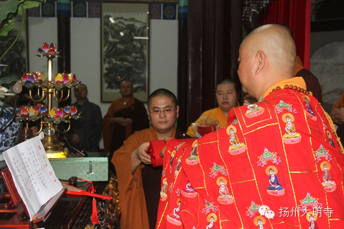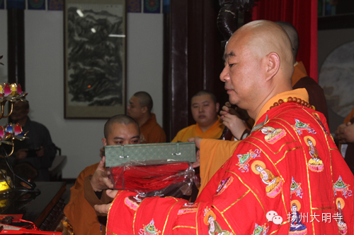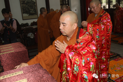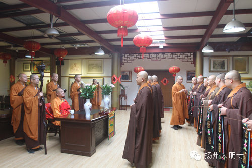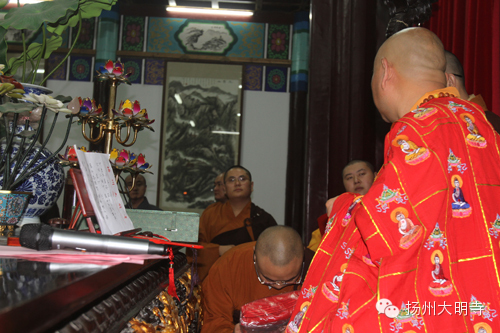 2014年9月24日,农历九月初一,扬州大明寺在藏经楼内举行传法大典,大明寺方丈能修大和尚将佛祖心灯,正法眼藏,临济宗法脉传付于十五位法子;并殷切付瞩:善自护持,勿令断失。