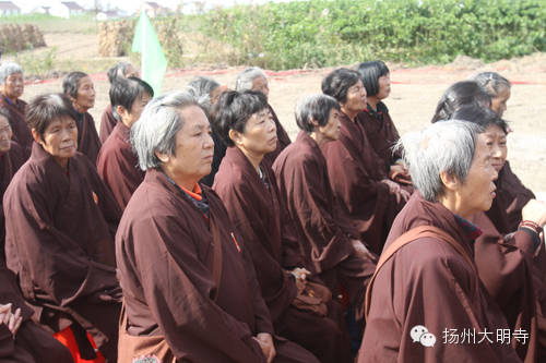 2014年10月28日,农历九月初五,扬州大明寺方丈能修大和尚参加家乡观音禅寺奠基洒净。