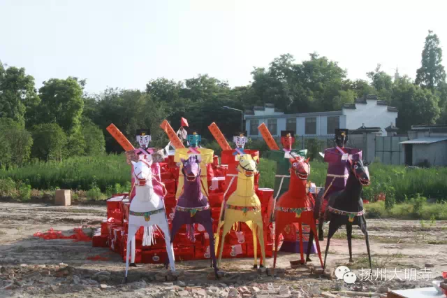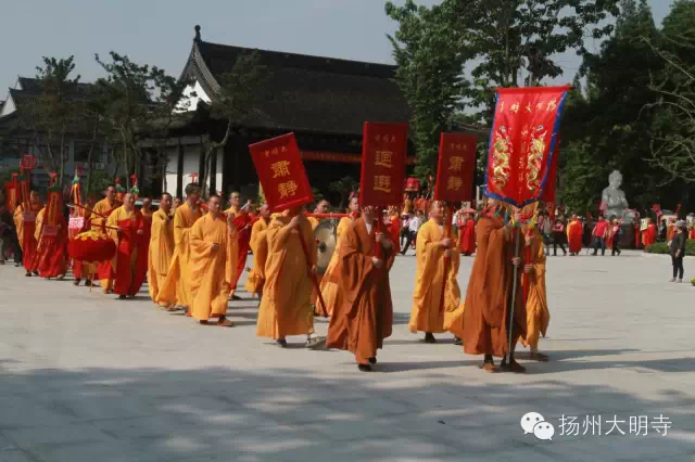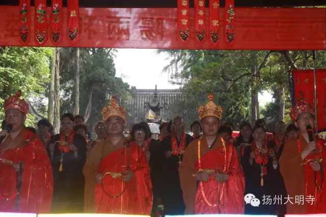 2015年5月24日, 扬州大明寺寺众姓水陆法会进入第七日,也是法会圆满之日。是日,法会外坛举行普佛法会,内坛举行圆满供、圆满香、送判宣疏、送圣等法事活动。