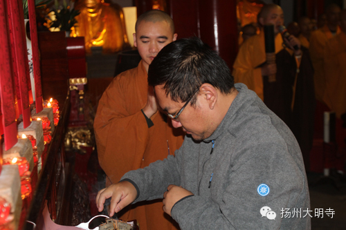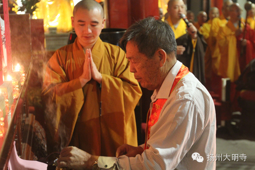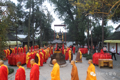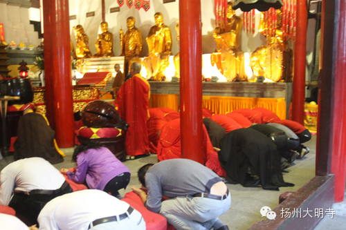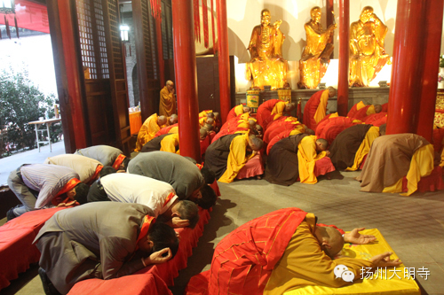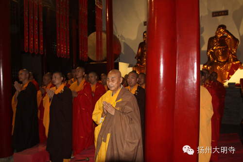 2014年10月12日,农历九月十九,扬州大明寺水陆法会第一天,恰逢观音菩萨出家日,诸佛生欢喜,龙天降吉祥,早晨5点消灾延寿普佛一堂。