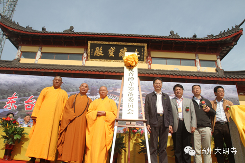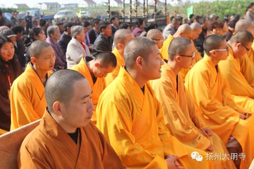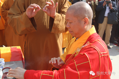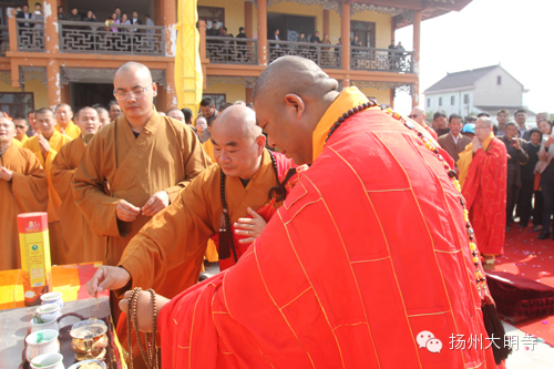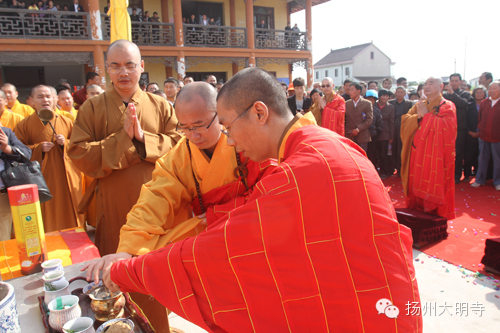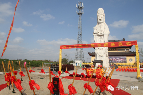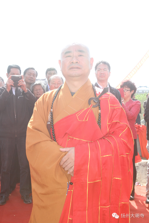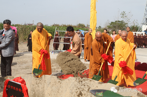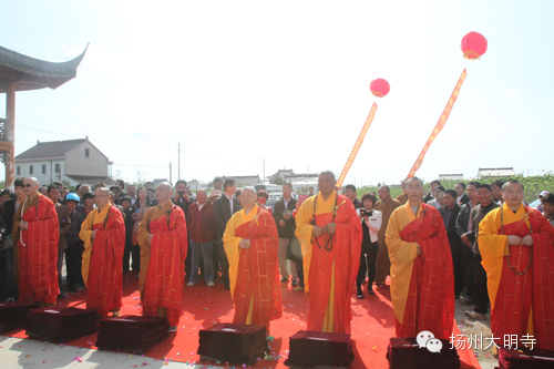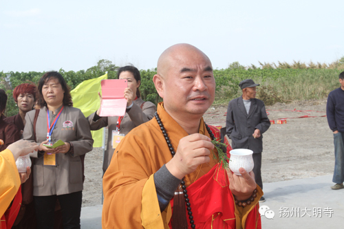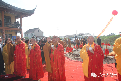 2014年10月28日,农历九月初五,扬州大明寺方丈能修大和尚参加家乡观音禅寺奠基洒净。