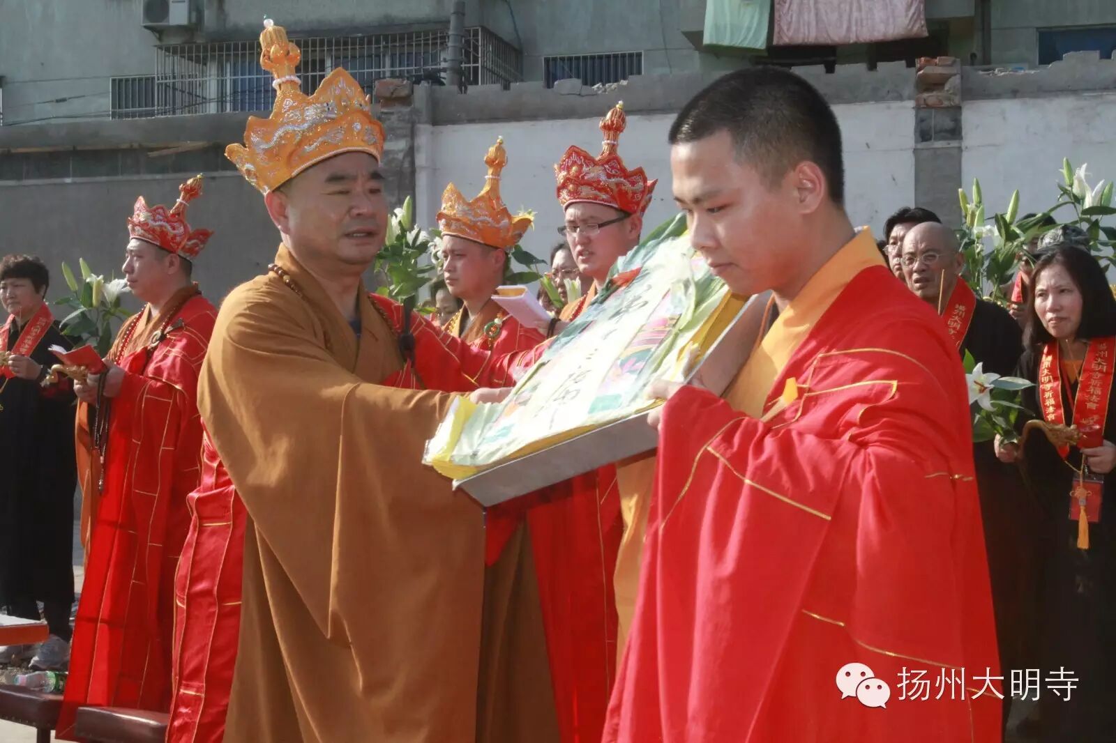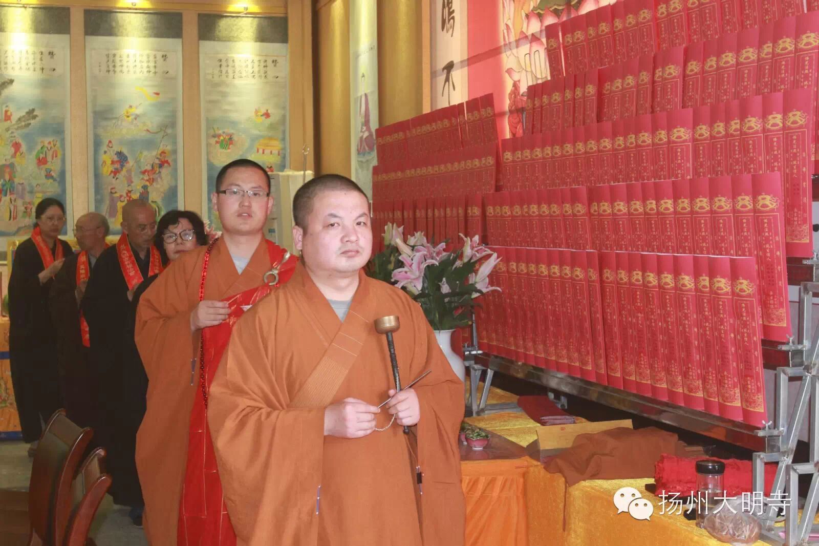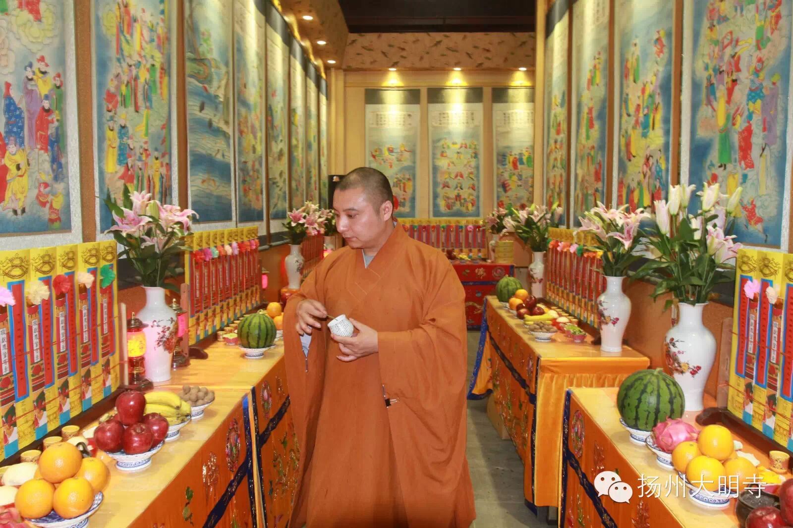 2015年5月24日, 扬州大明寺寺众姓水陆法会进入第七日,也是法会圆满之日。是日,法会外坛举行普佛法会,内坛举行圆满供、圆满香、送判宣疏、送圣等法事活动。