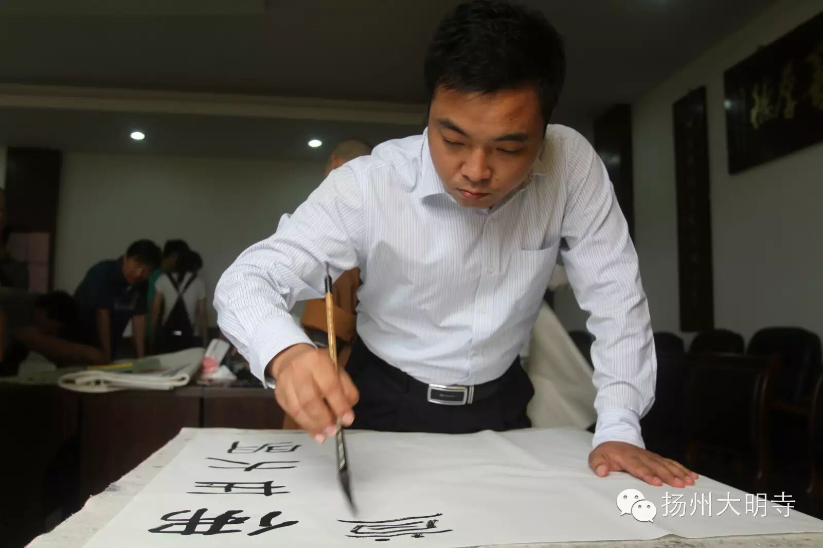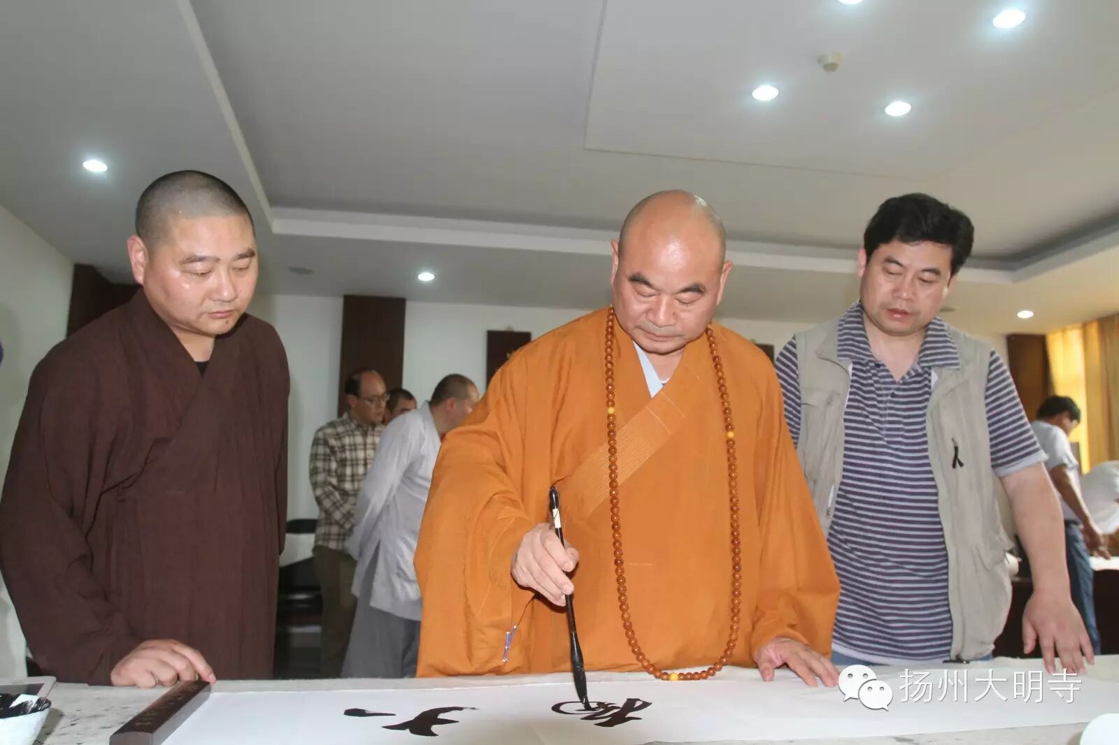 下午举行了书法交流会,能修大和尚与诸位书法家们都现场书写作品,并且还互赠结缘,书法家们都十分感恩能修大和尚的慈悲,感谢能提供这么样的一个平台。