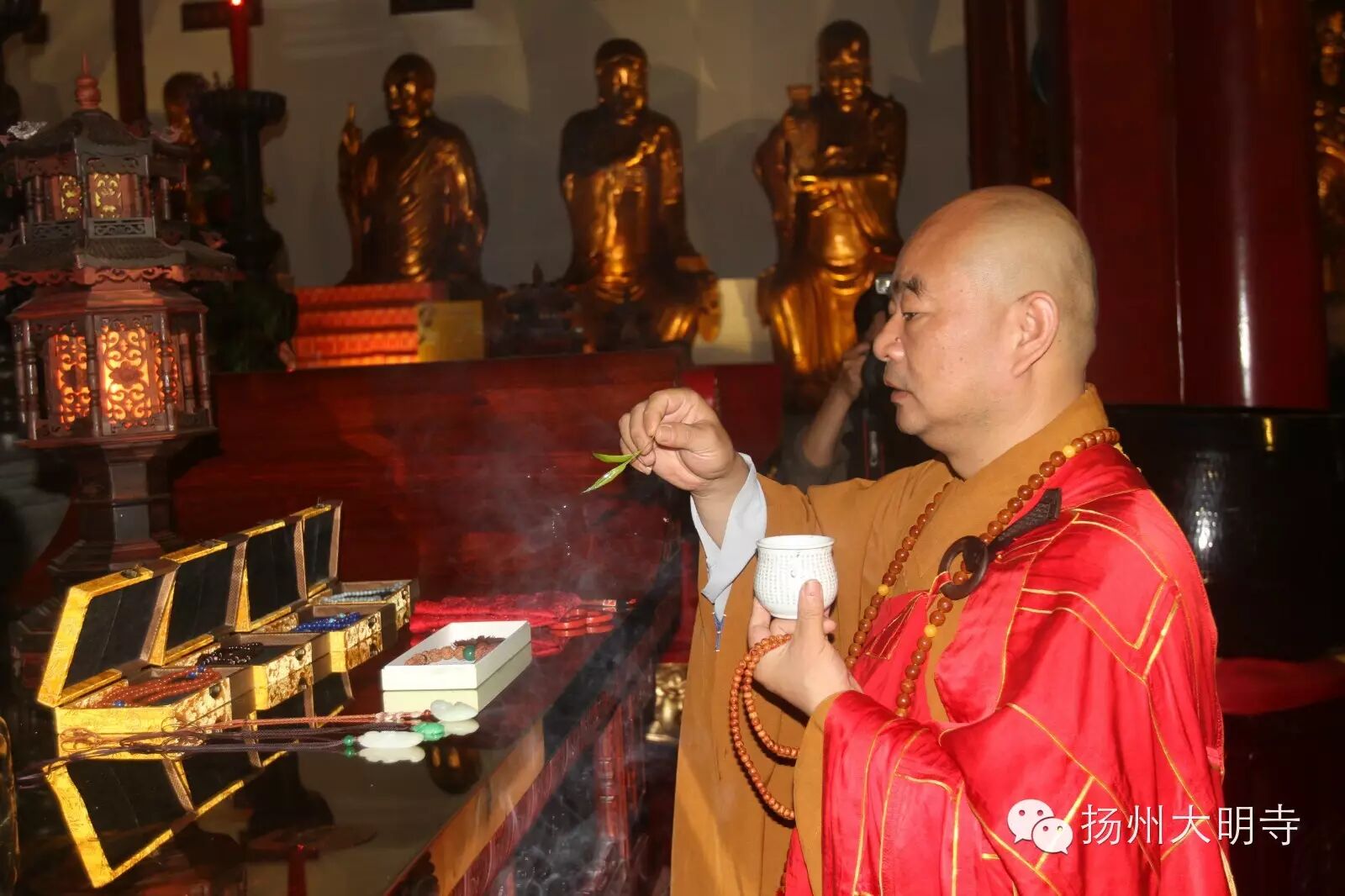 早晨五时,能修大和尚率常住两序大众共同为本次书法展,开光祈福,法会过程殊胜而又庄严。
